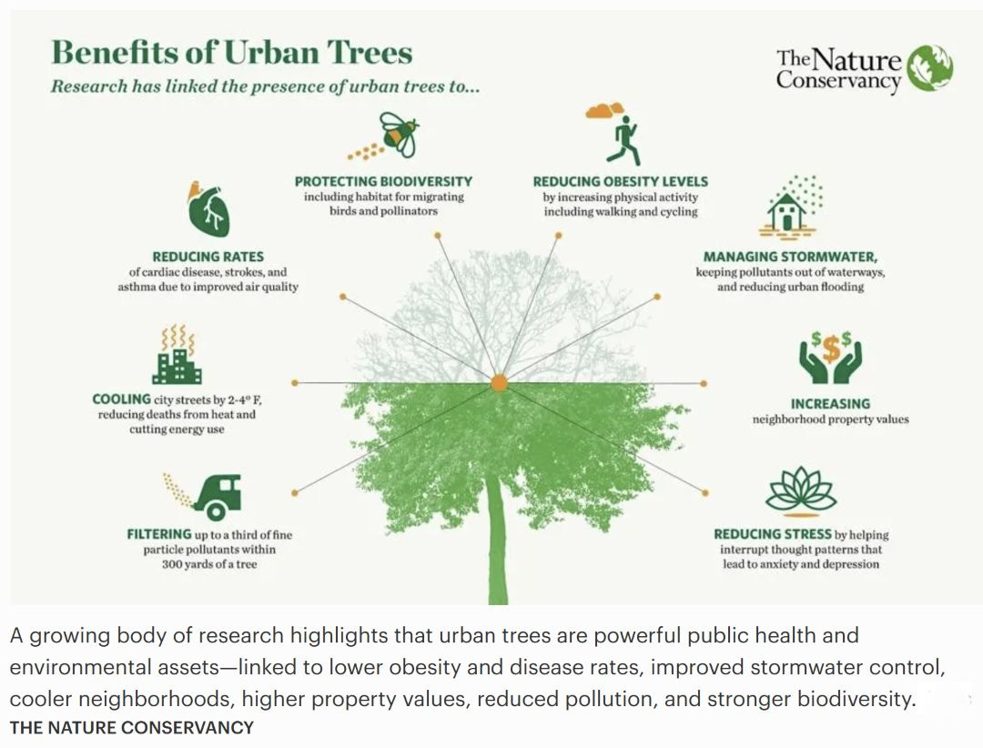 After planting more than 8,000 trees and shrubs in low-income neighborhoods with high pollution exposure, they found residents’ high-sensitivity C-reactive protein (hsCRP) levels — a key inflammation marker — were lower by 13-20%. These reduced levels correspond to a nearly 10-15% reduction in the risk of heart attacks, strokes, or cancer. — Forbes (read for more examples)
