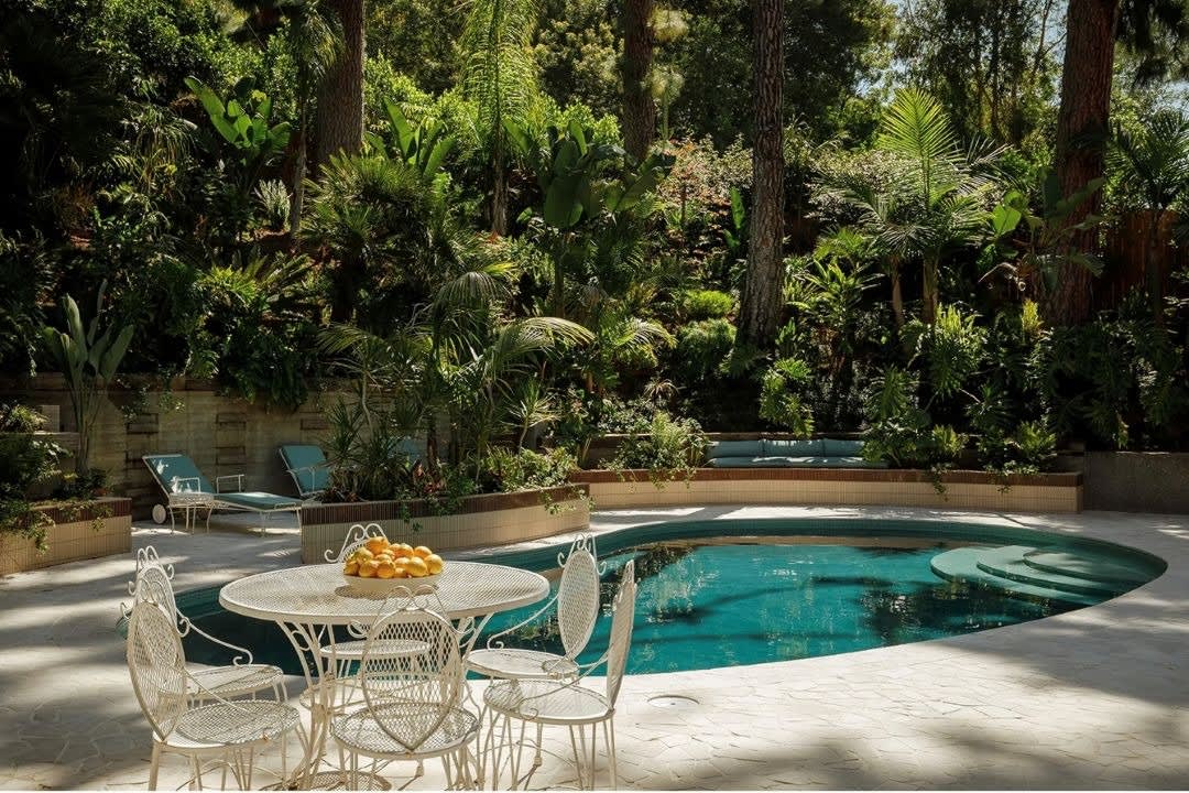Yes, the pool ($$$) makes a big difference in this transformation by Lauren Caris Cohan and her partner in life and business, Matt Jacoby. But I’d argue the furniture and additional planting — lots and lots of lush plants in what was already a wooded hillside — MAKE this backyard. Don’t you want to hang out there?