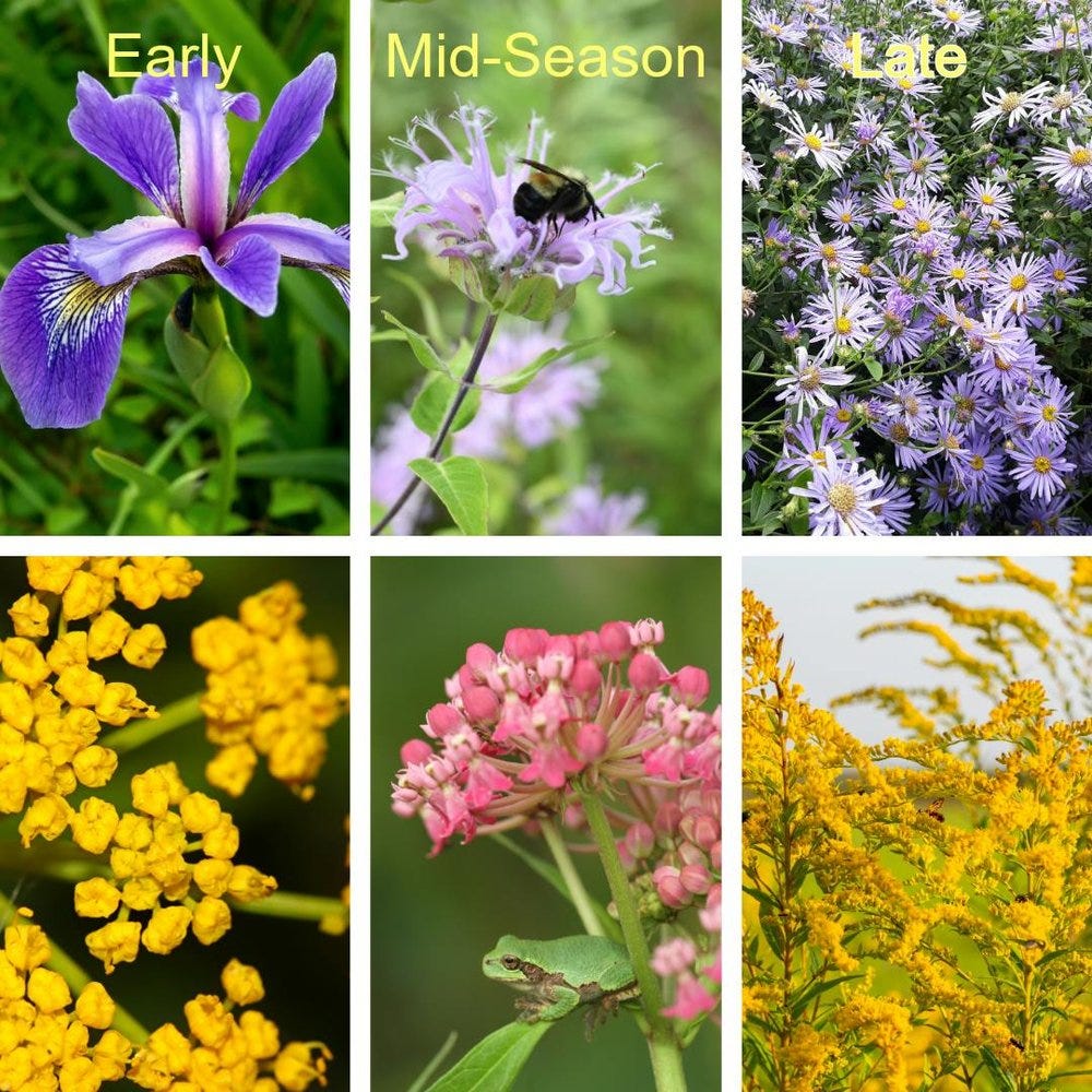 Great Michigan resources for native plant information include The Midwest Native Plant Primer: 225 Plants for an Earth-Friendly Garden, East Michigan Natives (nursery), and Michigan Wildflower Farm (seeds). I recommend using a three-by-three grid to identify three blooms for each part of the growing season — early, mid and late; see details in 5 Steps to Order Your Plants). [Other readers, find your up-to-date regional native plant primer at Timber Press and regional databases below.]
