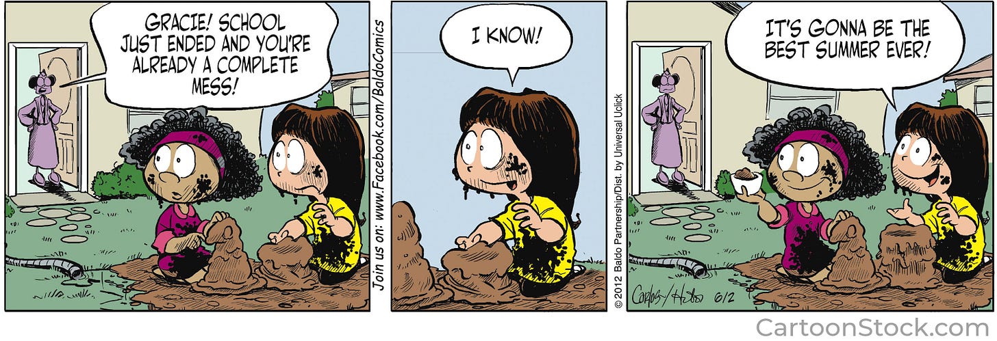 Make a mess: I never tired of making volcanoes with vinegar and baking soda and painting ourselves with watercolor crayons. Or just dump out a bag of soil in the yard and bring out their trucks. Hose everyone down before returning inside.
