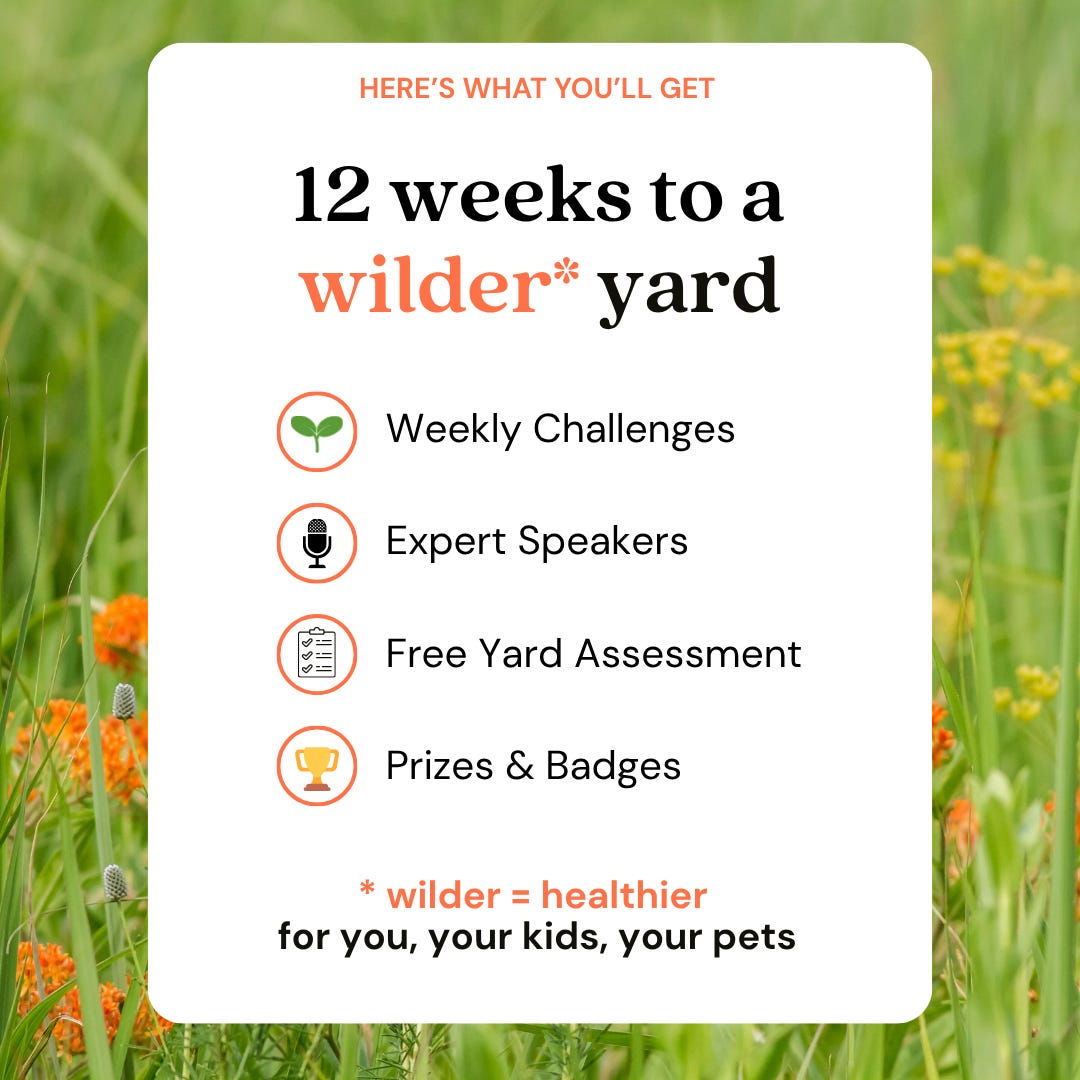 As some of you know, I manage the Less Lawn More Life challenge: a free 12-week program helping people turn everyday yards into real habitat. It’s all new this year— new experts, new resources, new tools. It starts May 7 with a live kickoff featuring Robin Wall Kimmerer(!), followed by one simple, expert-guided action each week.