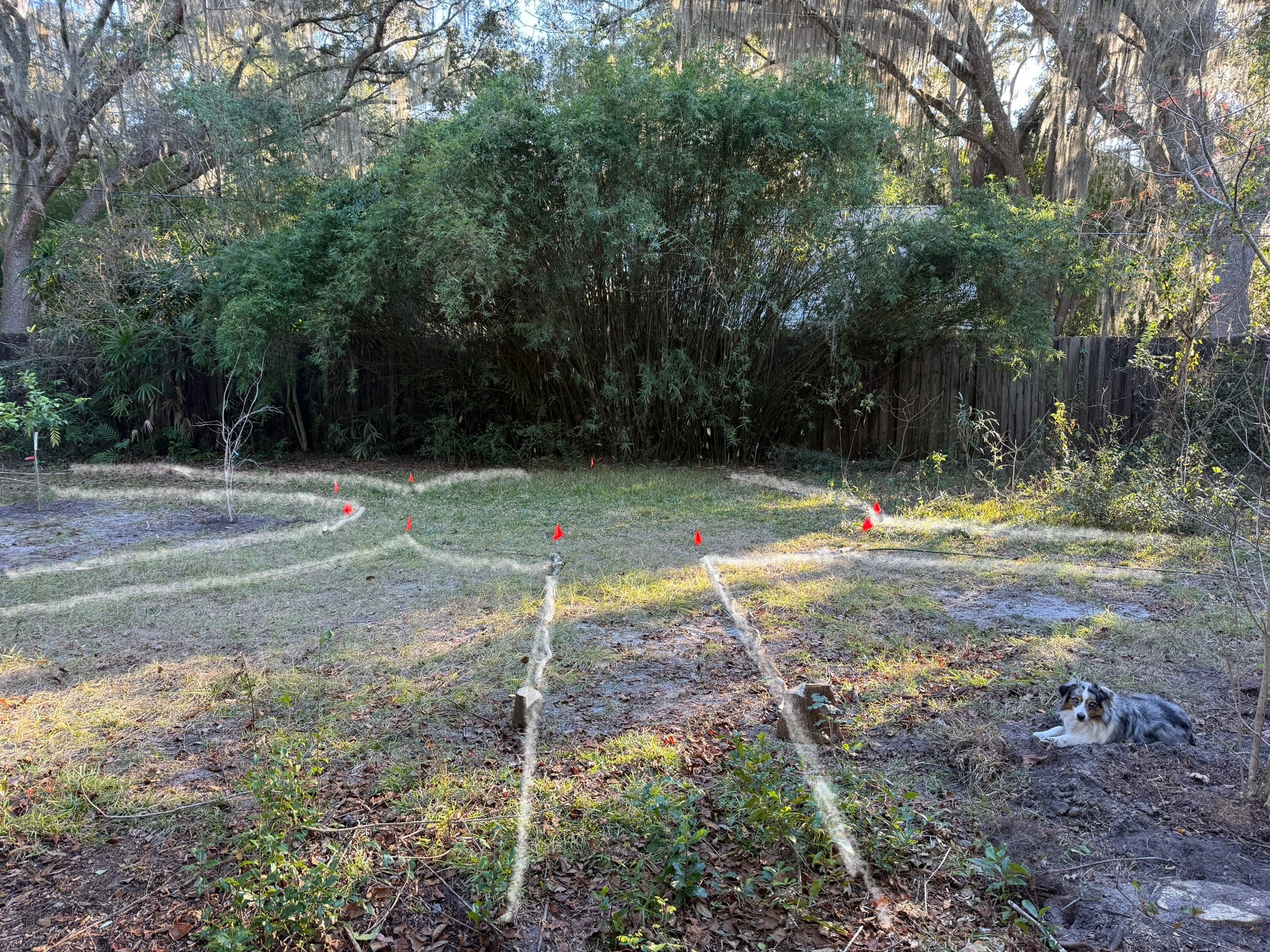 In my new Gainesville garden, I used flags and branches to mark out the human spaces—rooms and the paths that connect them—before we installed any plants. I used ovals and circles, rounded shapes that fit into golden ratio rectangles and squares. (The first rectangle in a Fibonacci sequence is a square, one by one.) It looks crappy right now (let’s face it), but I’m confident it’ll become fabulous and I’ll share its progress over time.