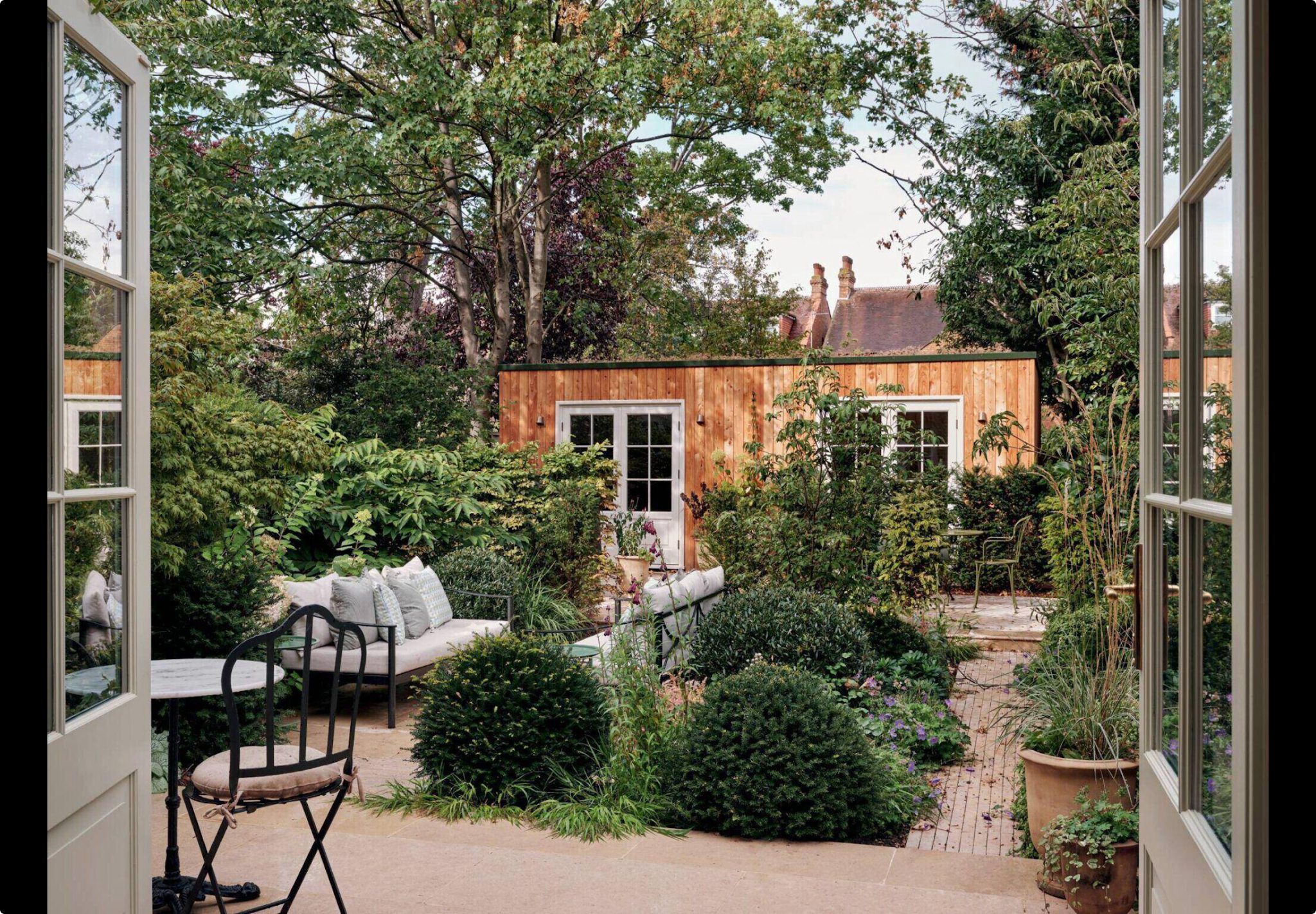 ‘The garden, like the house, was a complete disaster,’ recalls Elizabeth, who called on garden designer Cali Rand to transform the outdoor space into distinct, functional areas, including a dining space and two separate seating areas. ‘We had some really nice mature trees to work with, and Cali did a really great job of planting out the rest.’—The English Home