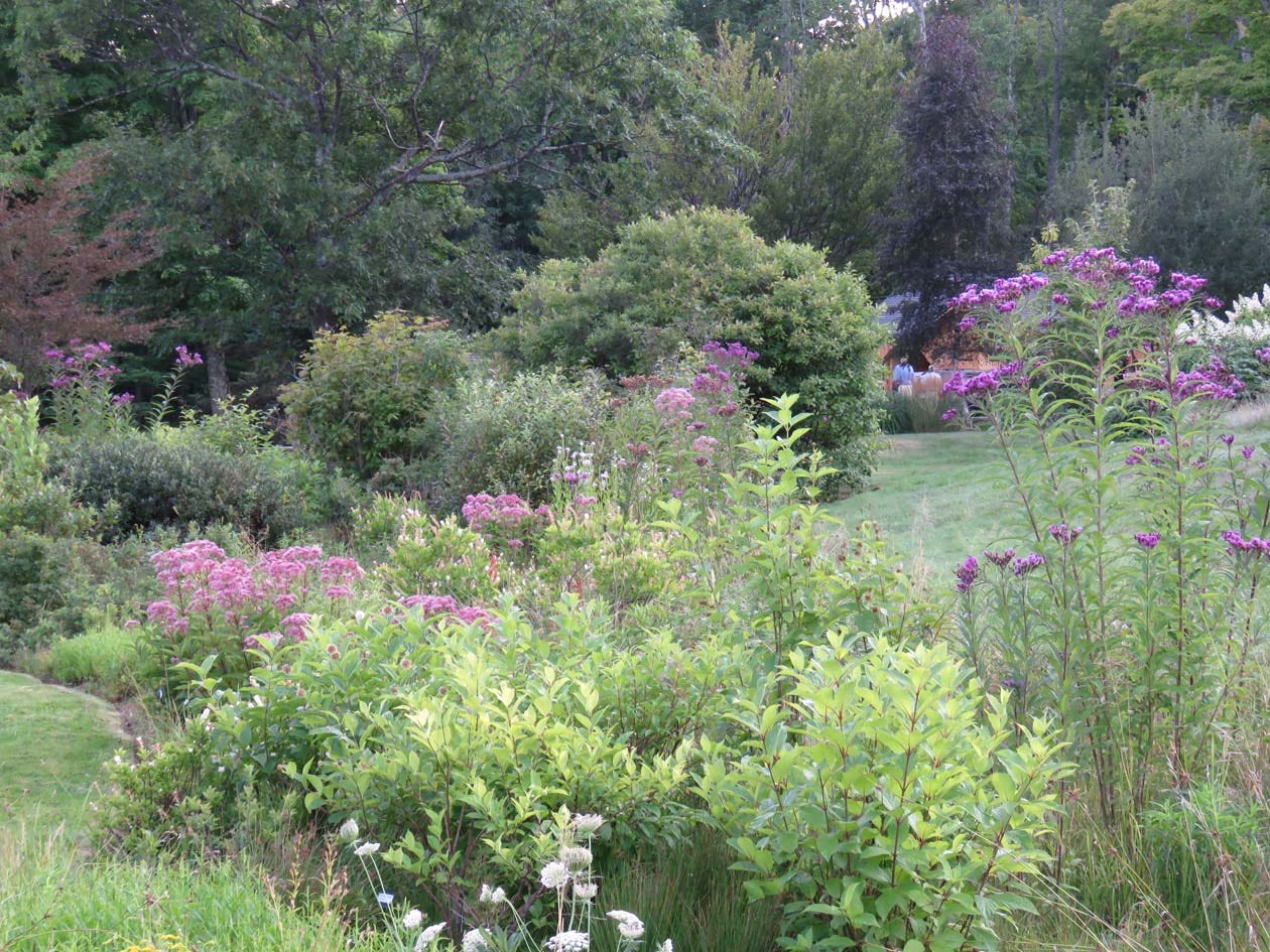 I also edit native plants: If the woodland sunflowers obscure the sphinxes that guard our front door, I cut them back. If there’s a black-eyed Susan in my purple garden, I cut that to the ground, too. If a native shrub or tree seeds into a meadow area, I cut it back, too.
