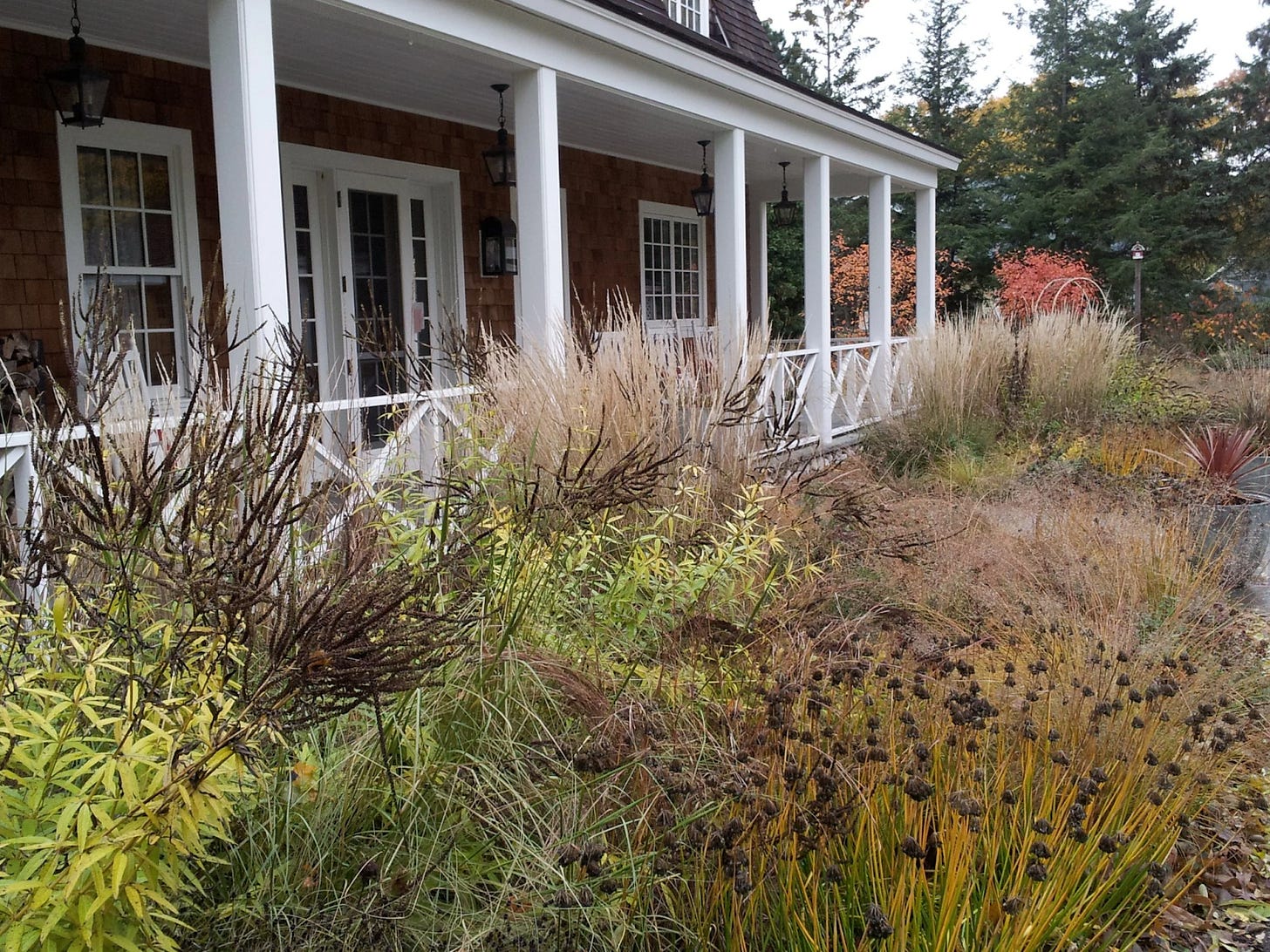 These residential gardens by Northwind Perennial Farm illustrate the succession of perennial blooms from summer through fall. I especially love the pink-white Lindheimerâs beeblossom, native to south Texas and Louisiana.